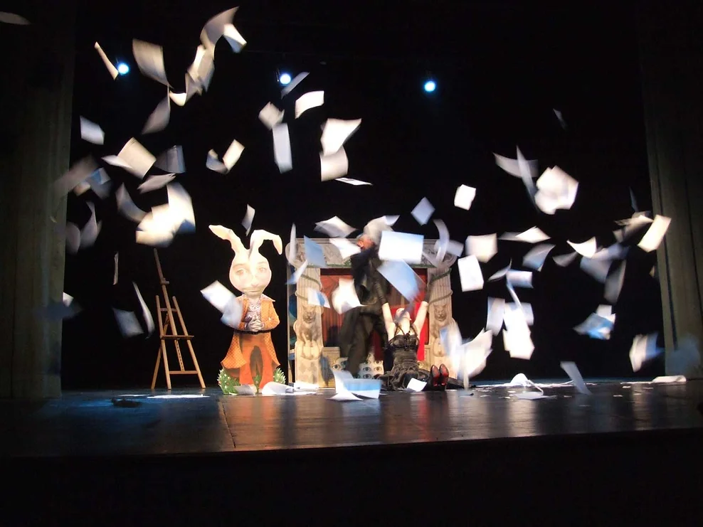 „…lebo každá oxfordská profesorská rodina toho času mala papierové divadlo“ (vyjadril sa režisér Čáni) a Lewise Caroll túto rozprávku vymyslel pre priateľove deti, z ktorých dievča sa volala Alica. Totižto aj z toho dôvodu, že Alica vznikla v období keď tento žáner bol populárny, a tak obľúbený žáner 19.storočia sa dostal na dosky 21. storočia. Pravdaže bol to zámer. Jednak byť iní a onakvejší ale aj a exkluzívnejší a expresívnejší. To sa režisérovi podarilo aj tým, že si zvolil manšaft, ktorému bezpodmienečne verí. Rozhodne Miloša Janouška, ale aj herecký kolektív, ktorý tvoria: Miroslav Babiak, ktorý predvádza herecký kolektív, Hana Majerová, “ktorá sa naozaj v zázračnom divadelnom svete dobre cíti“ a „neprehráva“ a Samera Hamadeha, ktorý je znovu na doskách po trojročnej prestávke. Mimika, expresia a gestika hercov uniesla túto popletenú „ problematiku“ – najmä ich vrtošivým, živým „obsluhovanie“ plošných statických papierových bábok. Mali sme, podmienečne povedané, dva herecké kolektívy – kočovných hercov, ktorí nemajú maringotky ale sa vrhli do fejto formy a papierové bábky, ktoré režisér zámerne vybral z konštrukcie papierového divadla. Osobitne chcem poukázať na tieto herecko-režisérske finty: Hana je presvedčivá Alica – ukázala to najmä v scéne, keď nezvláda vysoké opätky, teda čo ako sa vo svete rôznych rozprávkových bytostí dobre cíti, radšej chce zostať vo svojom svete detských ilúzií. Aj v dobre nacvičených tanečných bodoch, a v pohybe, ktoré poctivo a minunciózne nacvičuje choreografka baletka Maja Grňová. Miroslav Babiak udával tempo, na momenty to všetko zrýchľoval, a zexpresívňoval. Vdýchol život dvom postavám- papierovým kartónovým bábkam – upanáhľanému bielemu Zajacovi a najmä presvedčivo oživil najstatickejšiu paprierovú bábku Kráľovnú kariet. Toto bola výborná finta- riešenie Kráľovnej kariet – jednoducho zväčšená karta, ktorú navrhol scénický a kostýmový projektant Ďula Šanta. Pokiaľ ide o jeho návrhy, asi poslúchal režisérsky zámer a riadil sa akousi kombináciu viktoriánskeho anglickeho výzoru Alisy a trólovských postáv. Samotná konštrukcia papierového divadla, ktorá bola v strede scény bola urobená na spôsob Manetových Raňajok v tráve (obrazu, ktorý takisto vznikol koncom 19.storočia). Tento ironizujúci eklektický – nadhľad na „dizajn“ predestavení, akým sa Ďula Šanta zvykne riadiť, aj tentoraz trefne zapadol. Rovnako tak songy a kabaretové tromfy autora hudby a zvukových ruchov Stevana Mošu.